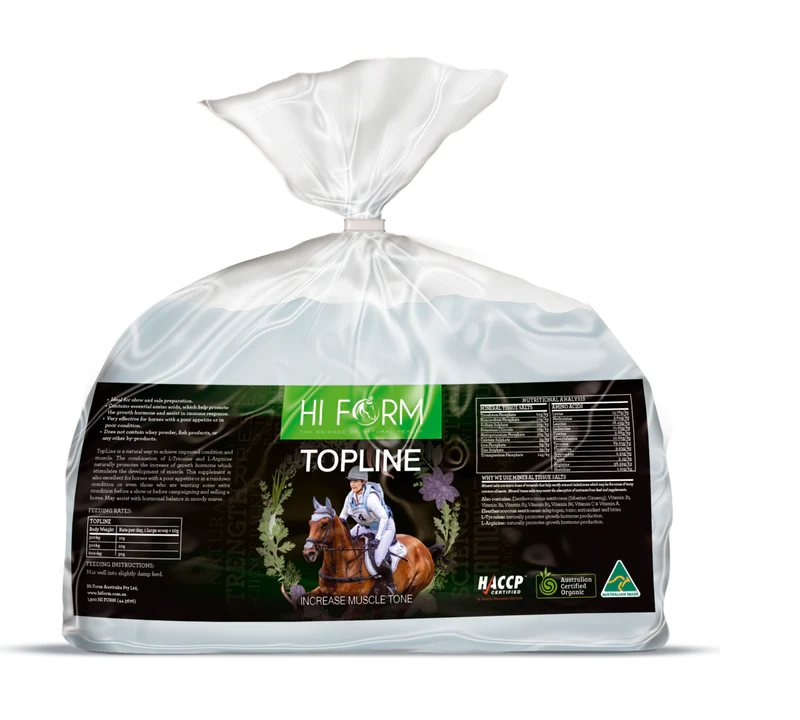 Hi Form TopLine is a natural way to increase muscle tone and top line in just six weeks. Your horse gains that performance advantage you need to win.